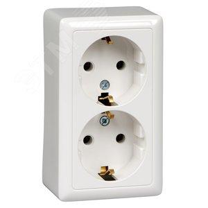 Розетка Systeme Electric (ранее Schneider Electric) ХИТ (открытой установки, цвет белый) двойная с заземлением, без шторок предназначена для сетей до 250 В на ток до 16 А. Двойная розетка позволяет подключить два устройства в одном месте. Заземляющий контакт обеспечивает дополнительную защиту от удара электрическим током. При наличии заземления электрический потенциал уходит в землю, защищая человека. Сделано в России.- Характеристики