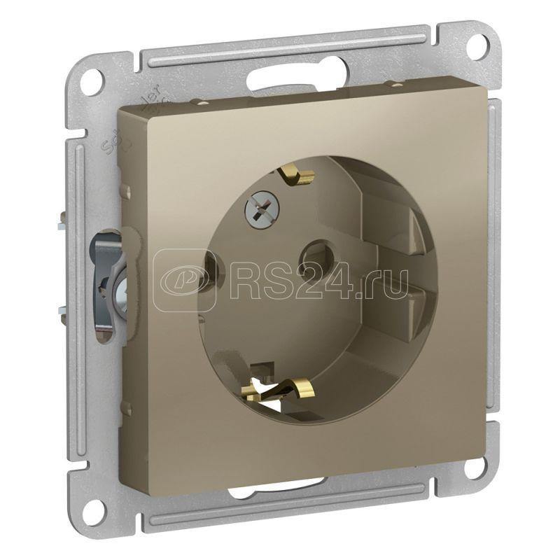 Механизм Systeme Electric (ранее Schneider Electric) серии AtlasDesign в цвете шампань розетки одинарной с заземлением и шторками подходит для сетей 250 В, на ток 16 А. - Заземляющий контакт обеспечивает дополнительную защиту от удара электрическим током. При наличии заземления электрический потенциал уходит в землю, защищая человека. - Лицевые детали из качественного ABS-пластика, устойчивого к царапинам и УФ-излучению. - Усиленные прямые монтажные лапки для лучшей фиксации механизма в монтажной коробке.- Характеристики