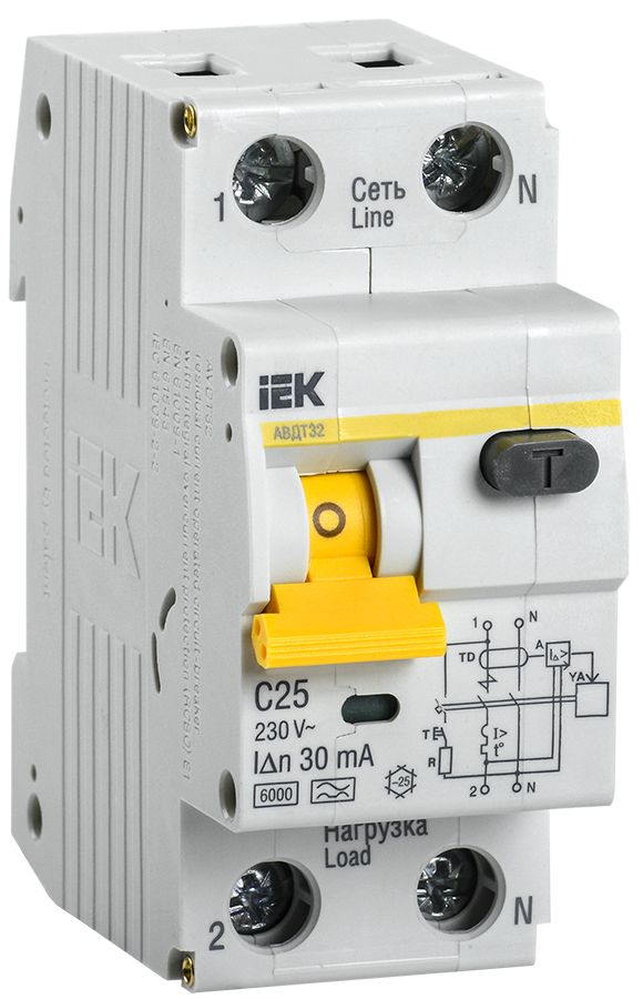 Автоматические выключатели дифференциального тока АВДТ32 предназначены для защиты человека от поражения электрическим током при повреждении изоляции электроустановок, для предотвращения пожаров вследствие протекания токов утечки на землю и для защиты от перегрузки и короткого замыкания. Рекомендуются для защиты групповых линий, питающих розетки наружной установки, розеток и освещения подвалов и гаражей- Характеристики