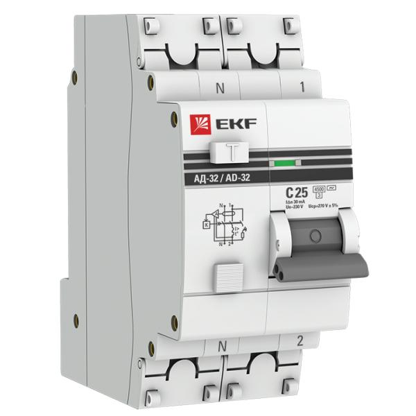 41982 Дифференциальный автомат АД-32 1P+N 25А/30мА (хар. C, AC, электронный, защита 270В) 4, 5кА EKF