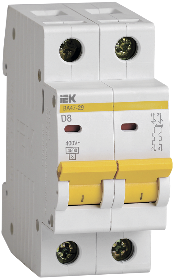 40882 Выключатель автоматический ВА47-29 2Р 8А 4, 5кА D IEK