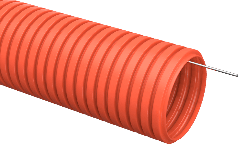 рубы гофрированные из ПНД оранжевого цвета предназначены для прокладки в них информационных силовых и слаботочных электрических коммуникаций. Гофрированные трубы из ПНД распространяют горение, соответственно сфера их применения ограничивается скрытой прокладкой в негорючих материалах. Условия монтажа: для скрытой прокладки в штробах стен, в потолках, в стяжке пола из негорючих материалов- Характеристики