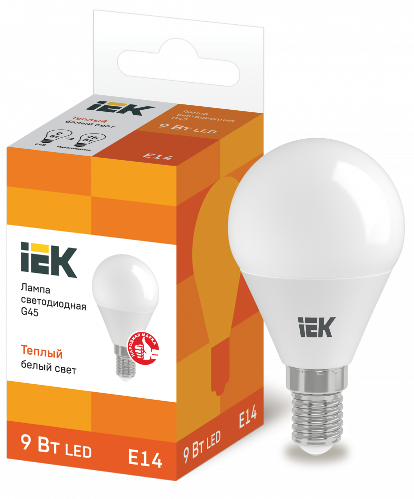 37439 Лампа светодиодная G45 шар 9Вт 230В 3000К E14 IEK