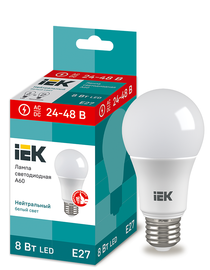 38415 Лампа светодиодная A60 шар 8Вт 24-48В 4000К E27 IEK