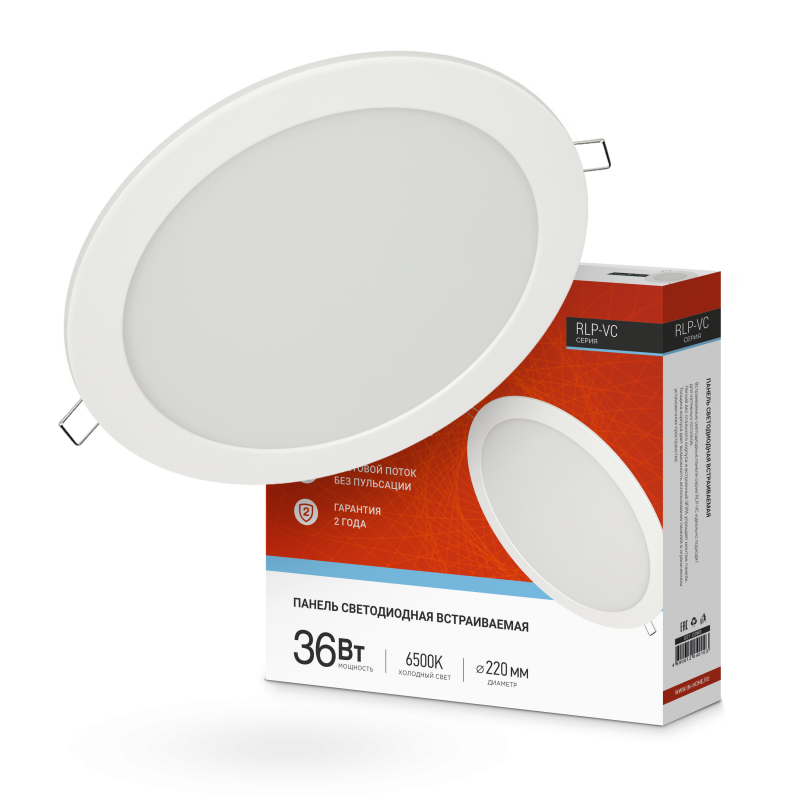 39928 Панель светодиодная встраиваемая круглая RLP-VC 36Вт 230В 6500К 2880Лм 220мм белая IP40 IN HOM